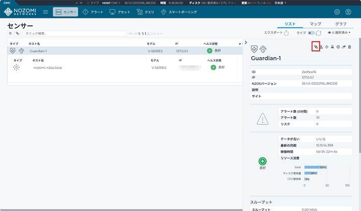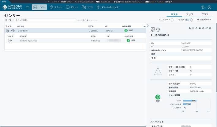 以下はデータダイオードでデータを受信しているCMCのセンサー画面です。センサーのIPアドレスが127.0.0.1になっているのが特徴的でしょうか。