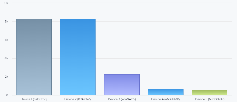 全アラートの占有率: 上位5デバイスで 20,864件 (全体の63.5%)